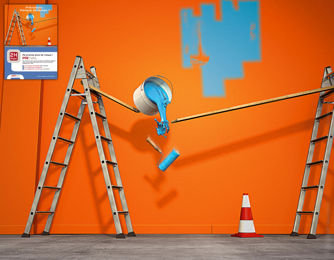 Client/Agence : OPPBTP - Images & Caractères - 2009 - Produit/Sujet : Accident du travail / Décor en 3d - Production/Support : Affiche & annonce presse
