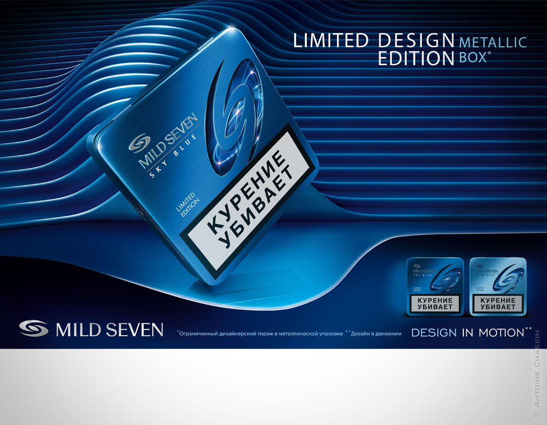 Client/Agence : Mild Seven -The Brand Union - 2011 - Produit/Sujet : Décor & paquet cigarette en 3d - Production/Support : Annonce presse & affichage