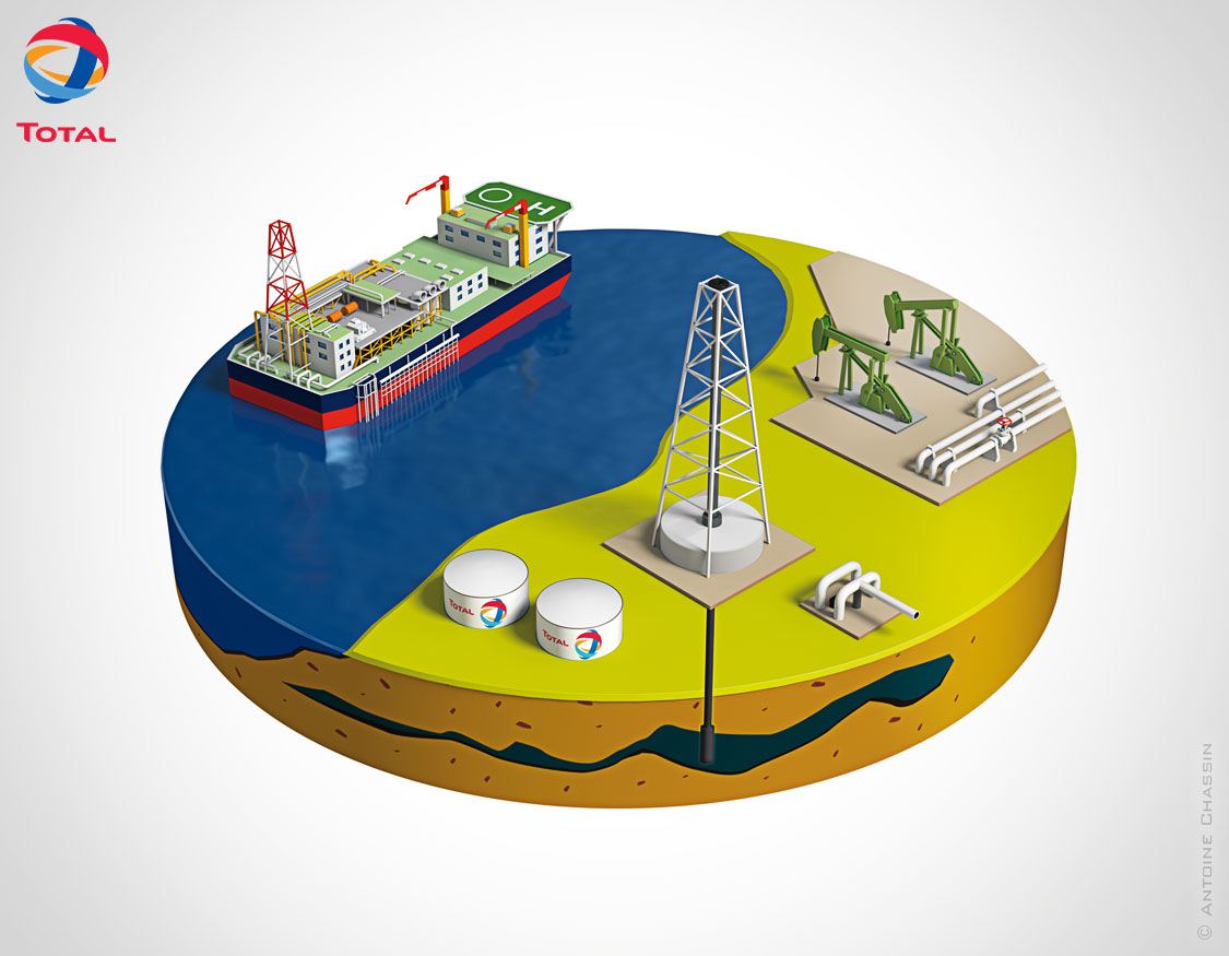 Client/Agence : Total - De Papé Conseils - 2012 - Produit/Sujet : 01 - Puits de forage stylisé en 3d - Production/Support : Panneaux Mondial Auto 2012
