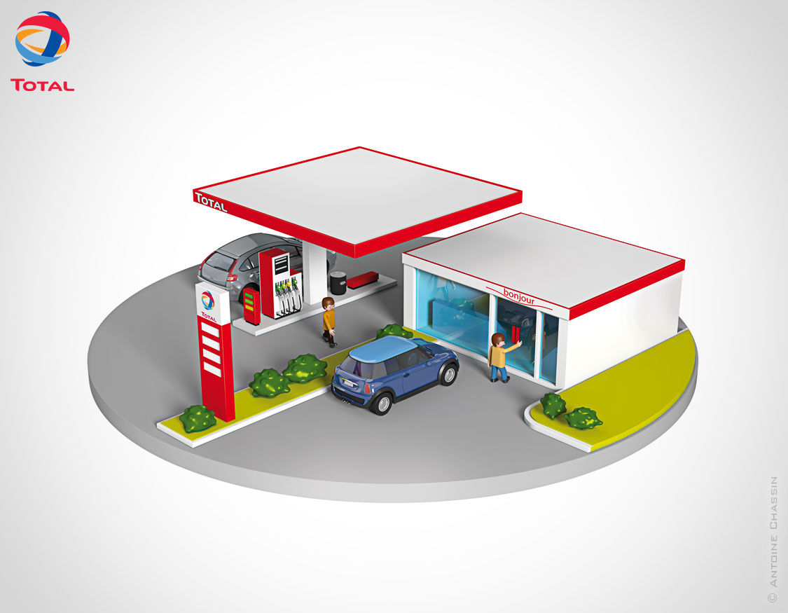 Client/Agence : Total - De Papé Conseils - 2012 - Produit/Sujet : 07 - Station service stylisé en 3d - Production/Support : Panneaux Mondial Auto 2012