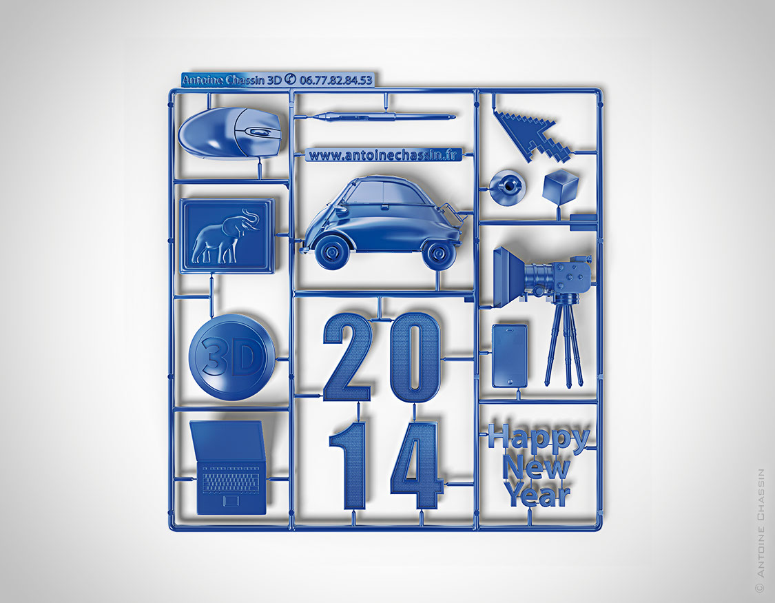 Client/Agence : Antoine Chassin - Auto promotion - 2013 - Produit/Sujet : Jouet en pièces en 3d pour ma carte Vœux 2013 - Production/Support : Papier