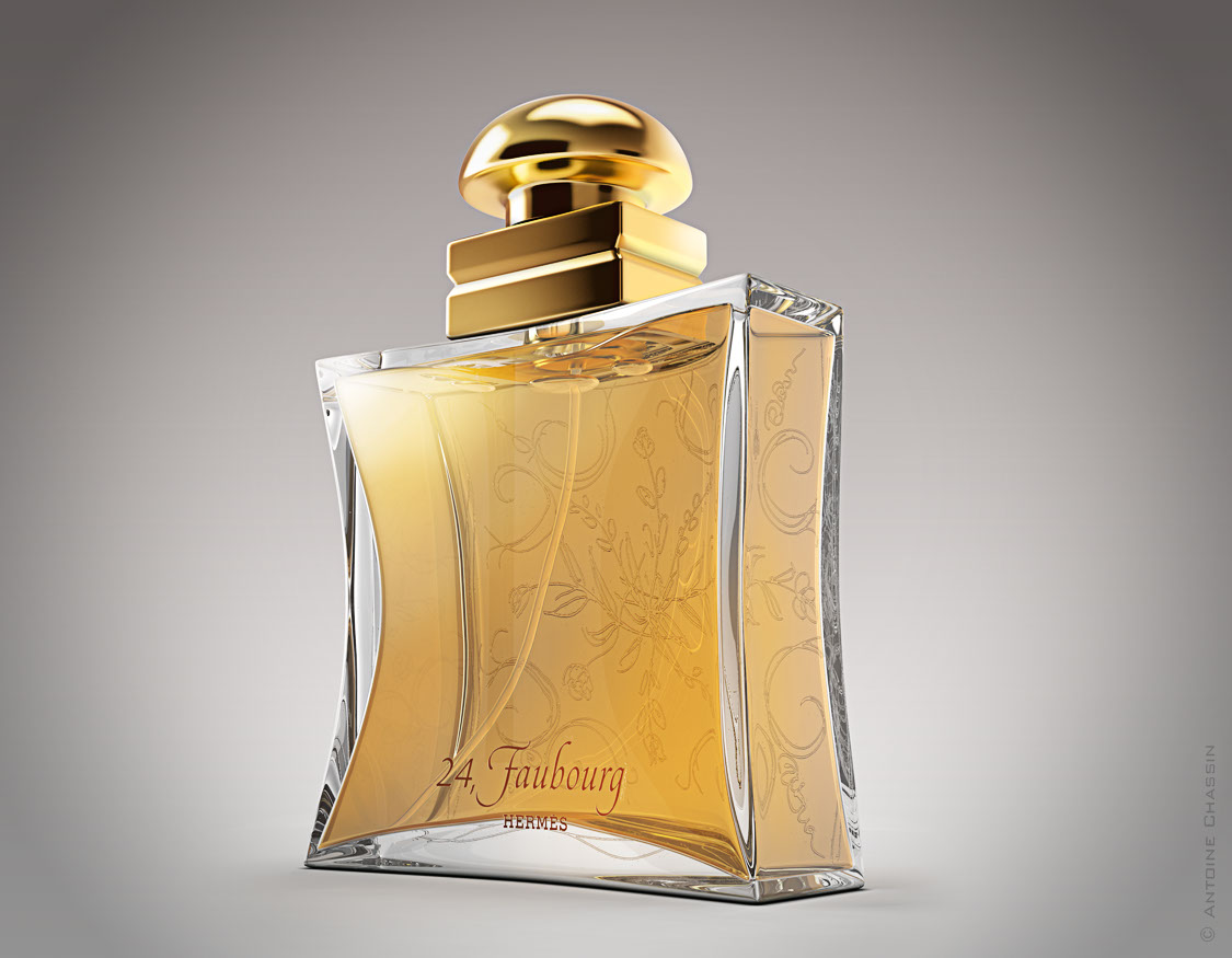 Client/Agence : Hermès Parfums - 2005 - Produit/Sujet : Pack crème 24 Faubourg en 3d - Production/Support : numérique