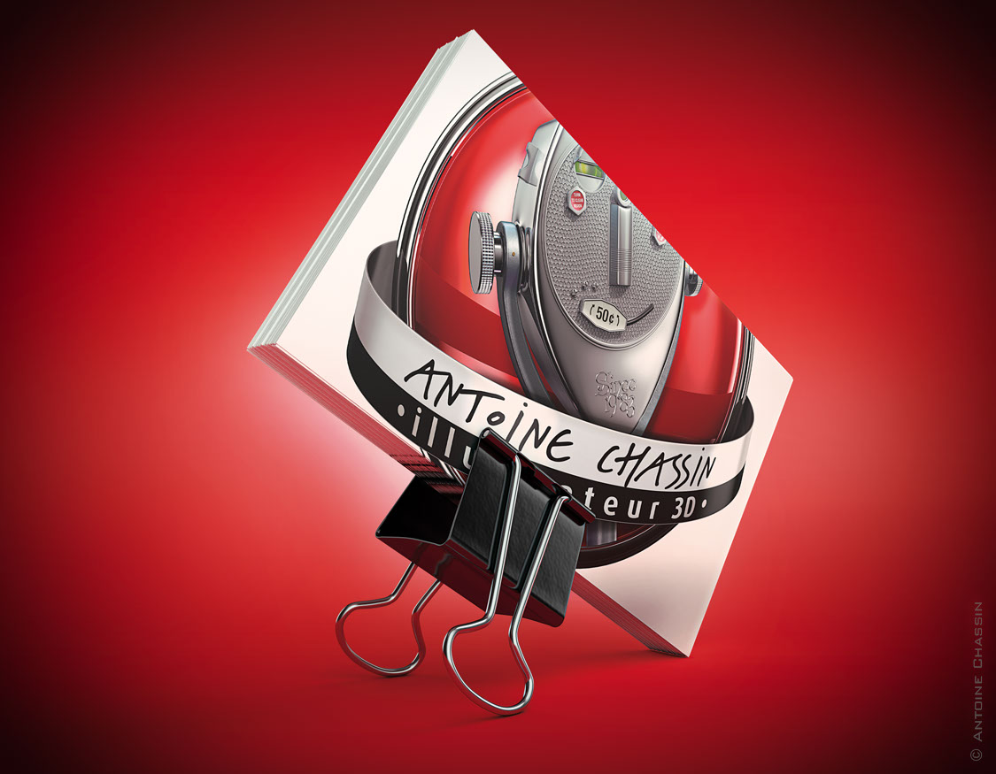 Client/Agence : Antoine Chassin - Recherche personnelle - 2015 - Produit/Sujet : Pince & carte de visite en 3d - Production/Support : numérique